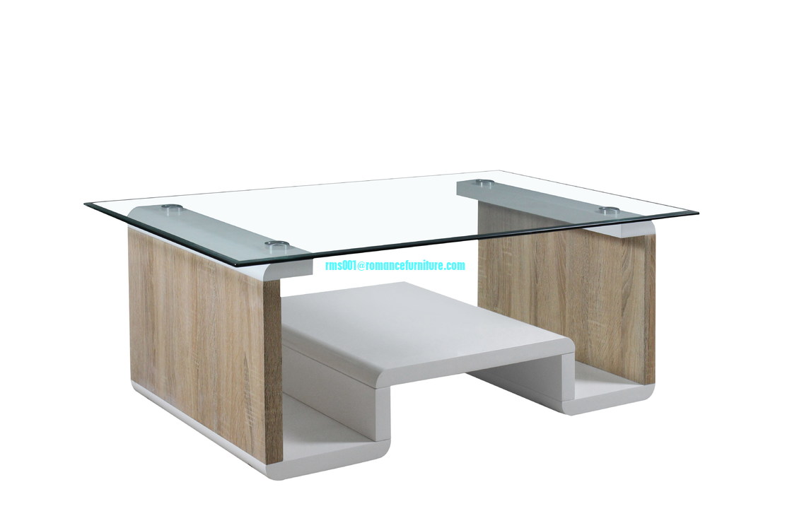 Matériau : verre trempé 8 mm, MDF brillant + base en papier collé MDF